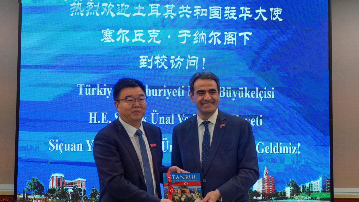 塞尔丘克・于纳尔对学校的热情接待表示感谢。他指出,中国是土耳其重要的合作伙伴,两国具有深厚的友谊,而重庆在土耳其对外交流中也具有重要地位。他希望借明年中土建交 55 周年之机,推动中土学生及学者的互换交流,期待双方在语言、文化、经贸等多领域开展更广泛合作。