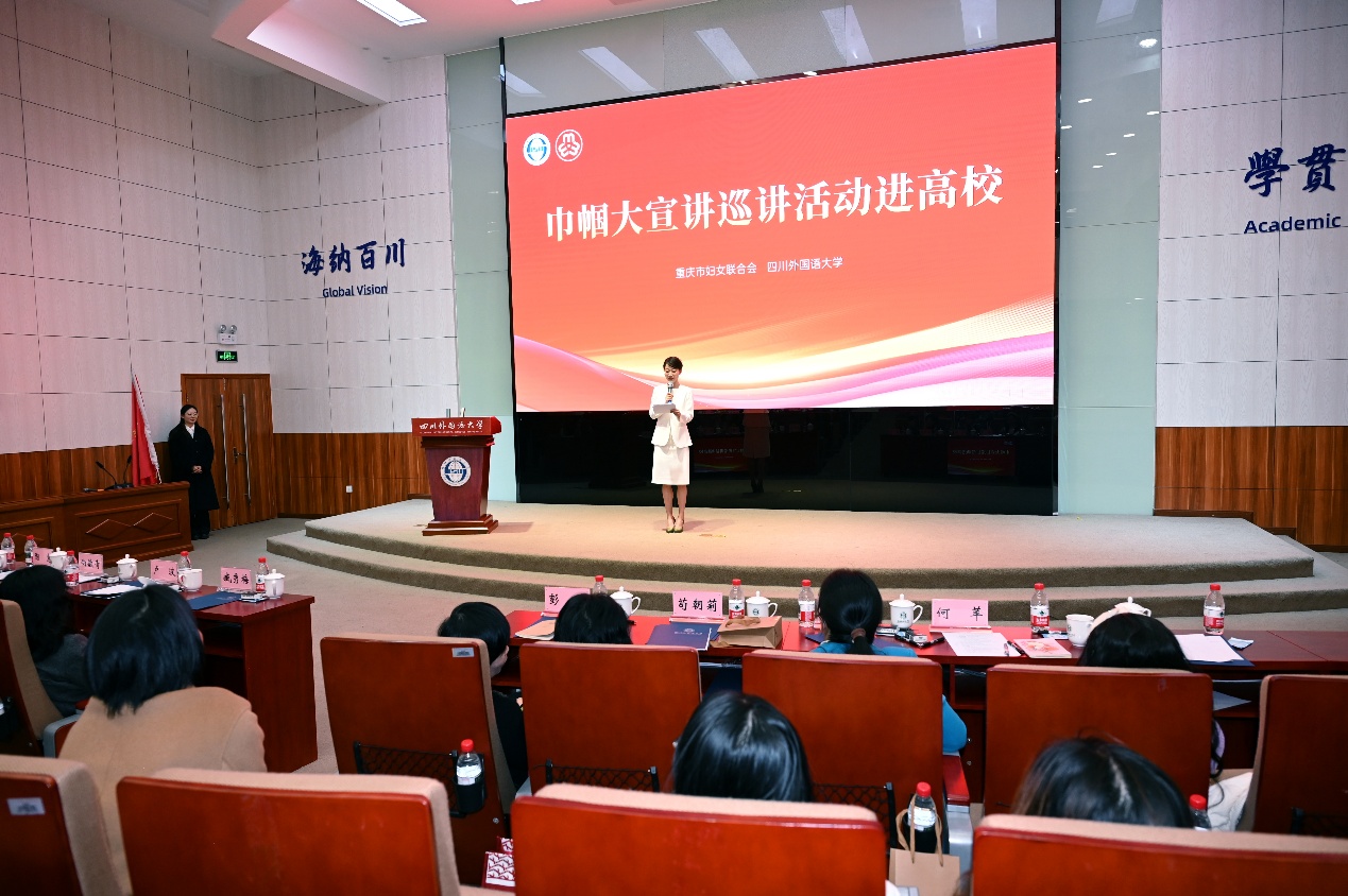 大会现场还举办了“巾帼大宣讲巡讲活动进高校”,我校马克思主义学院教师马陈静、赛力斯集团党工委主任周丽、重庆海陆国际传播公益基金会副秘书长陈灿、涪陵区青龙村党支部书记云钰婷、重庆市家庭教育学院院长杨宇孛分别作了分享。