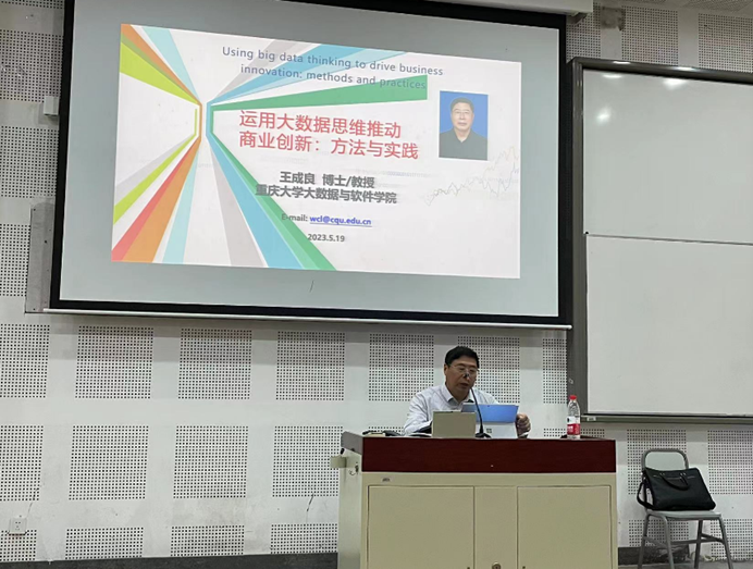 519日下午,重庆大学大数据与软件学院教授、重庆市中间件技术与服务实验室主任王成良教授做客我院“萃英学术论坛”,在歌乐楼B1-1作了题为《运用大数据思维推动商业创新:方法与实践》的学术讲座,大数据管理与应用专业系教师和全体同学聆听了报告,讲座由大数据管理与应用系主任王易博士主持。