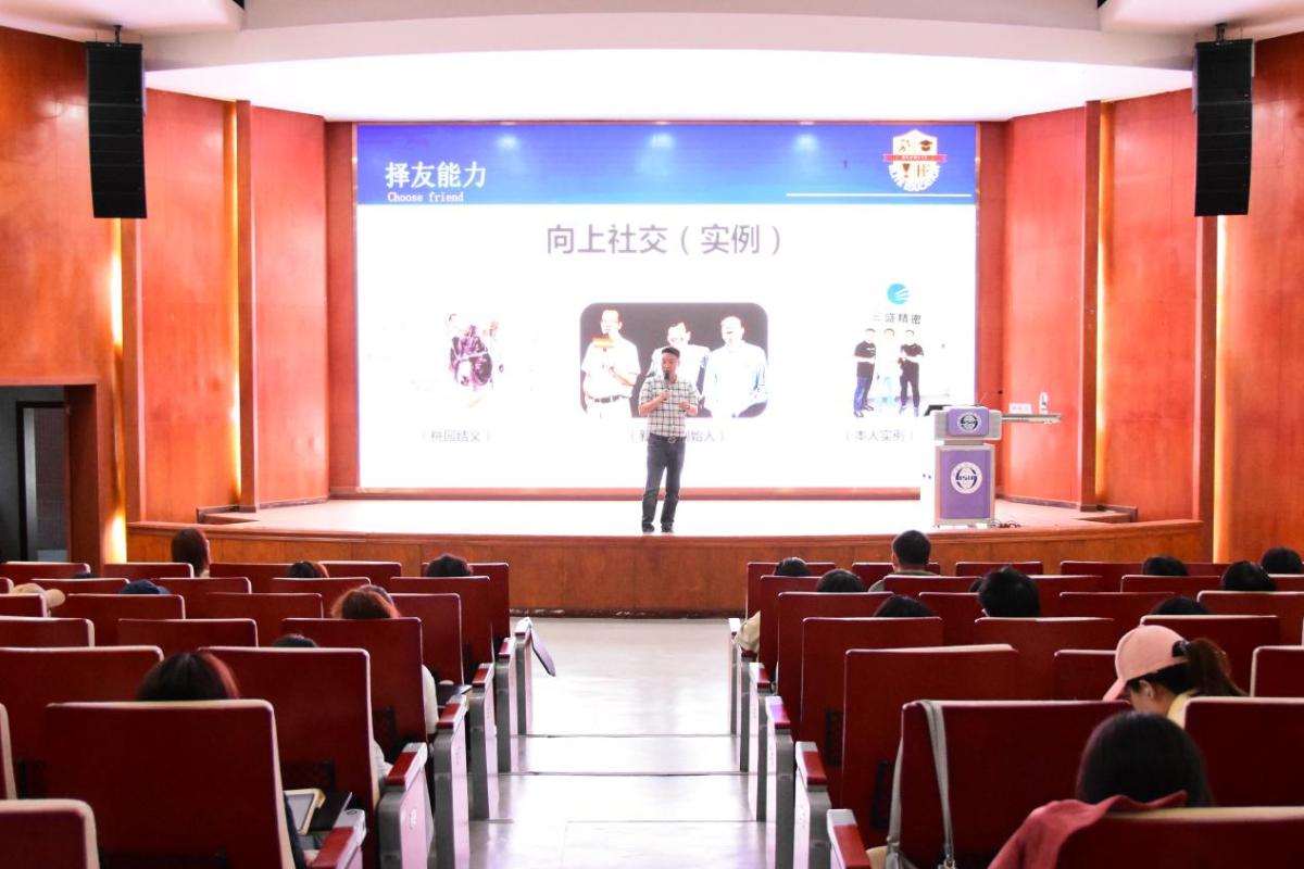 随后,张经理结合桃园结义、新东方等古今经典案例,生动阐释了向上社交的重要性。他指出,与优秀的人同行,不仅能相互激励、共同进步,更能积累经验、开阔视野,为个人发展提供有力支持,并拓展人脉,创造机遇。他鼓励同学们积极构建高质量的人际关系网络,为未来的发展奠定坚实基础。