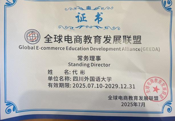 学院一直高度重视跨境电商领域的学科建设与人才培养。近年来,学院依托四川外国语大学的多语种特色优势,积极探索多语种跨境电商人才培养的新模式,致力于培养具有全球视野、扎实专业知识和跨文化交流能力的复合型电商人才。此次获授全球电商教育发展联盟常务理事单位,是对学院在电商教育领域所做出努力的高度认可。未来,学院将以此为契机,秉持“国际化+数智化+专业”的一体两化人才培养理念,不断优化课程设置,加强实践教学,深化产教融合,为全球电商行业培养更多高素质人才,为推动全球电商教育的发展贡献力量。