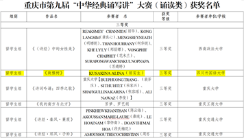 国际学院(出国培训部)国际学生在重庆市第九届中华经典诵写讲大赛中喜获佳绩