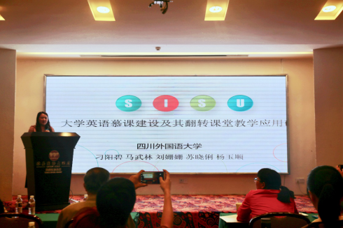 本次研讨会共设两个分会场,我校教师在第二分会场就翻转课堂为主题作了相关报告,向与会教师介绍了我校《新标准大学英语:综合教程》慕课的建设及其翻转课堂教学应用情况。具体围绕课程建设、小规模翻转教学实验阶段、大规模运行阶段三个板块探讨了建课的目的及过程,并运用问卷数据,结合实际情况分析了翻转课堂面临的挑战和问题。会场反响热烈,其他院校教师对我校的翻转课堂展现了浓厚的兴趣,与我校教师展开了激烈讨论,均表示四川外国语大学基于MOOC的翻转课堂教学是一种能改善学生语言能力和学习能力的有效方法。